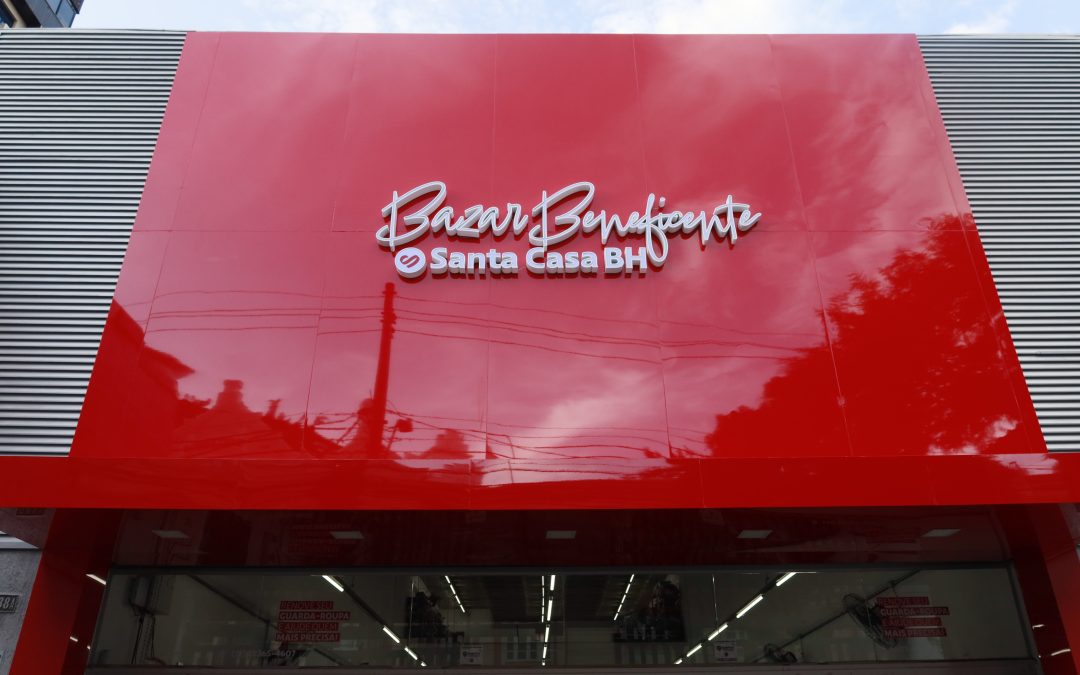 Logo em frente à histórica e icônica Maternidade Hilda Brandão, a fachada vermelha e moderna do Bazar Beneficente Santa Casa BH mostra uma diferente versão arquitetônica. Ainda que na mesma rua, ambas estão separadas por mais de um século de existência, mas mantêm por dentro o mesmo objetivo: promover impacto social e melhorar a vida das pessoas.